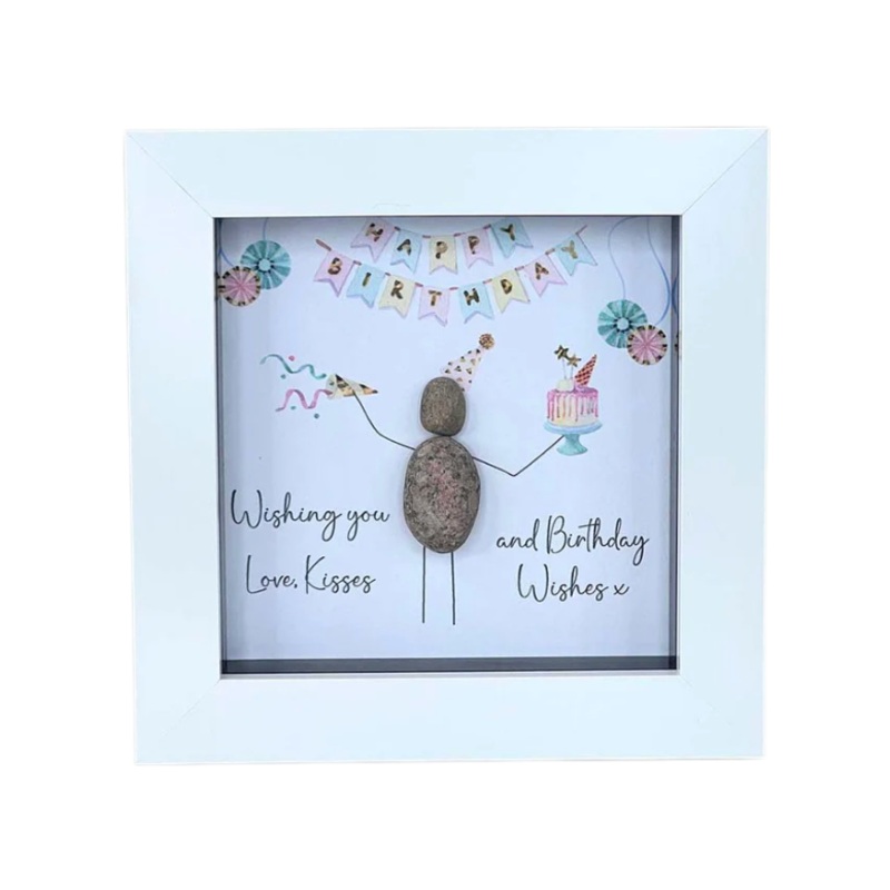 Natural pebbles and slate have been beautifully combined to create a symbolic piece of art to represent your story. The perfect addition to any home.