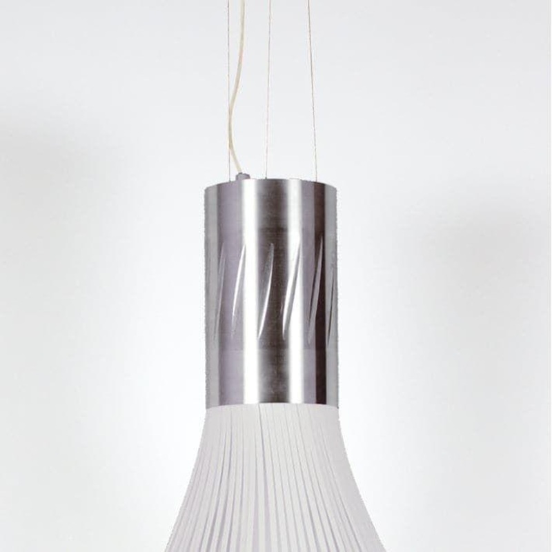 This attractive modern pendant lamp is a marvel of technology. The design uses a chemically etched aluminum body and a fiberglass diffuser. All of this is topped off with a unique feature that allows the light emission to be adjusted via a mechanical movement that opens the louvers, which alters the shape of the lamp and its shade. Softly diffused ambient light is provided by a standard 75 watt bulb and four LED bulbs. Available in black or white.