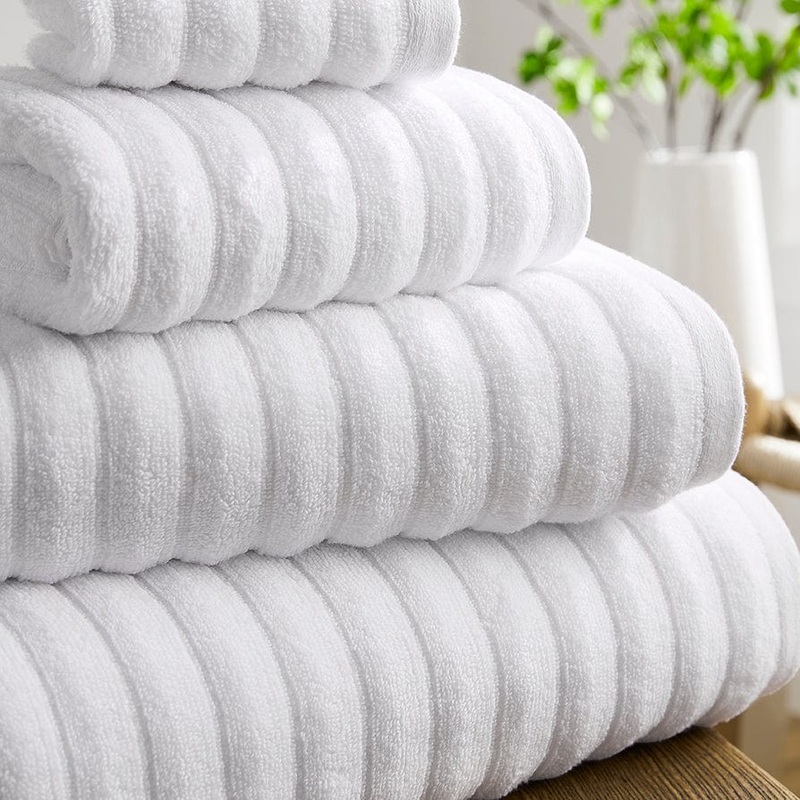 Recreate the ambience of a rejuvenating spa in your bathroom with our luxurious ribbed Monaco white towel collection.