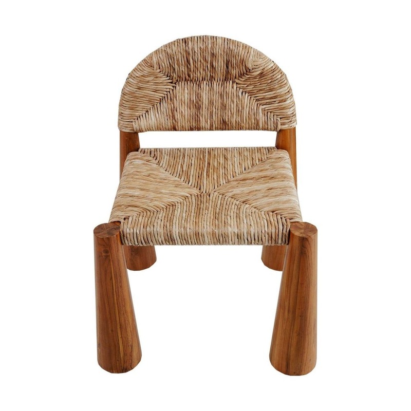 This unique chair will be a real show piece in any space. Expertly crafted with a teak wood frame and natural woven pandan seat and back this piece features bulky cone shaped legs and a rounded back design. The design, which is inspired by Alessandro Becchi’s Toscanolla mid-century design, can be used as either a dining chair or a living room accent chair.