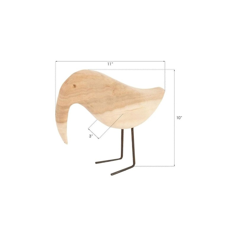 Tapping into our playful side, we bring you the Bleached Bird Sculpture that is both alert and pert. The simplicity of its profile and its wire legs juxtaposed against the complexity of the woodgrains make this attentive bird an instant textural introduction to a space. It is small enough to fit on a library shelf but why tuck it away? Place several of them on a stack of coffee table books for a fun display. We have natural and charred versions that make it extra fun to mix the light and dark hues.