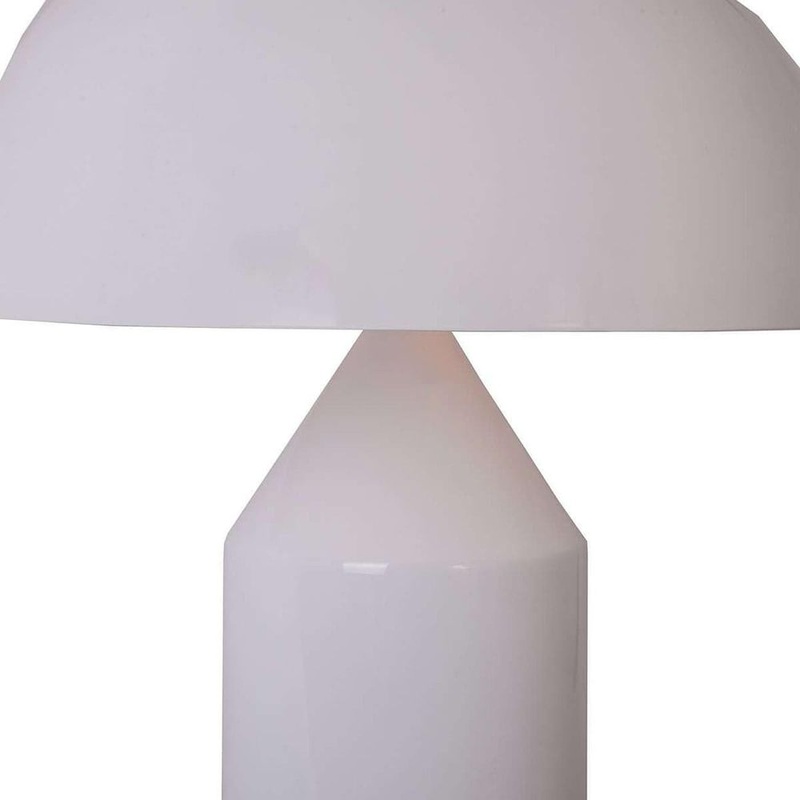 Inspired by Vico Magistretti’s original 1970s design this table lamp will add a touch of retro style cool to any space. The iconic modern design features a bold dome shade atop a pointed cylinder in solid metal with a white finish. Two 40 watt candelabra bulbs are nestled within the shade and will provide your room with glowing ambient light.