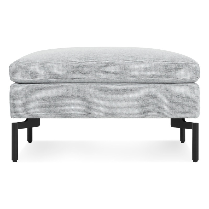 Sometimes it is not about starting from scratch, but rather revisiting past designs and making them better. The New Standard modern ottoman is simplicity at its best with a twist. Now new and improved. Wide arms and inviting loose cushions all come together with tuned proportions and show stopping legs.