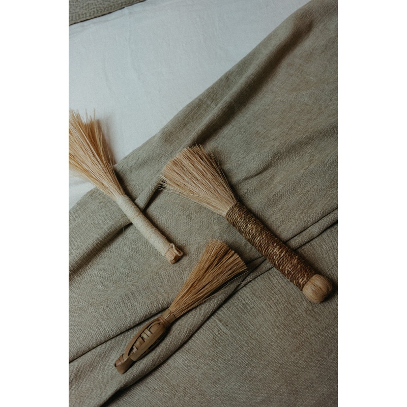 Truly a piece of art, this Seagrass and Palm Fiber sweep has intricate handle with an origami feel. Use it practically, because beauty and function can coexist, or as a display piece styled upon your bookshelf. This is a softer sweep brush designed for tables, benchtops, and smaller surface areas.