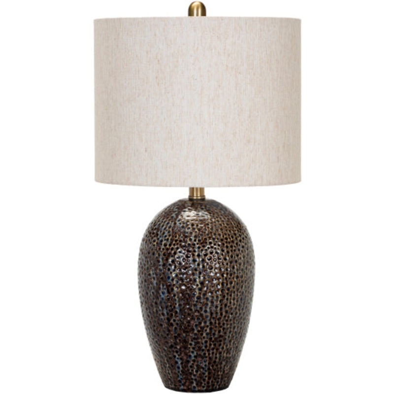 This Norderney Table Lamp is perfect for adding a touch of global style to your home. With its unique combination of ceramic, polyester, linen, and metal materials, this lamp stands 24 inches tall and offers an eye-catching design that will bring your space to life. Its minimalistic design makes it ideal for a variety of decor styles. Cleaning is easy with just a damp cloth. Let the Norderney Table Lamp light up your world!