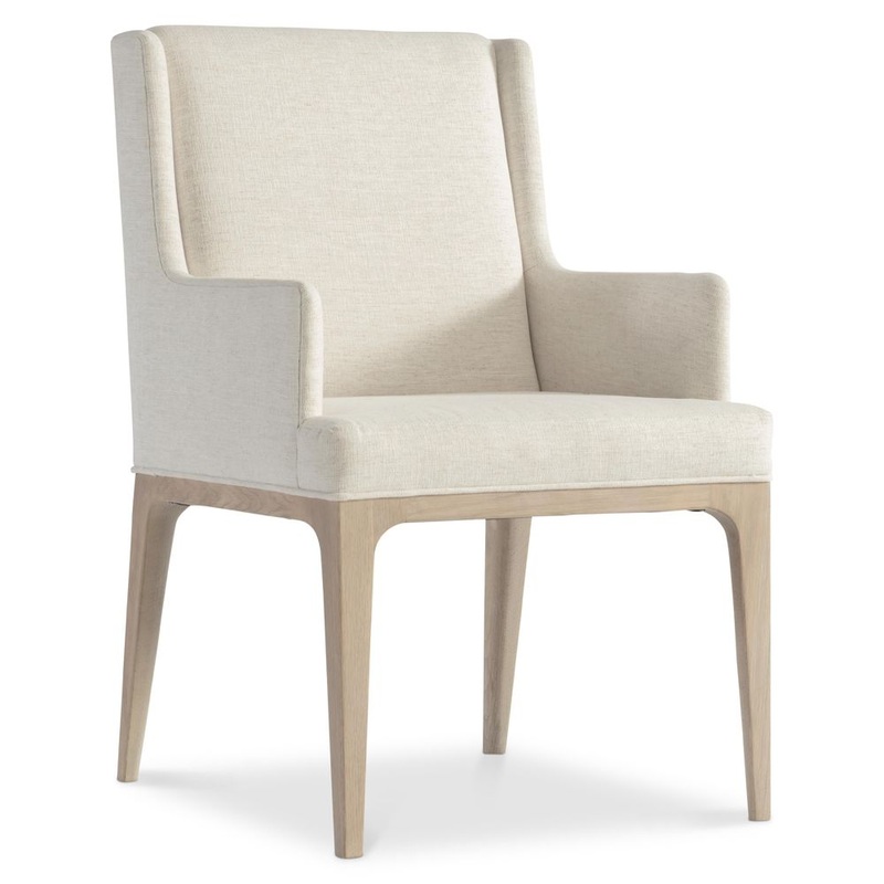Description: Stunning in its simplicity, the Norterie arm chair showcases the geometric forms that this collection is known for. Gentle curves meet straight lines in the back, arms, and seat, offering comfort balanced on an exposed wood frame.