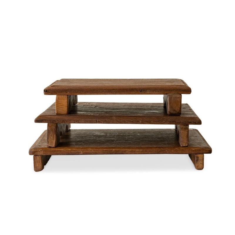Bring the style of a traditional Indian kitchen into your home with this hand-carved teak wood floor table. Each one is unique in its carving, colour and condition.