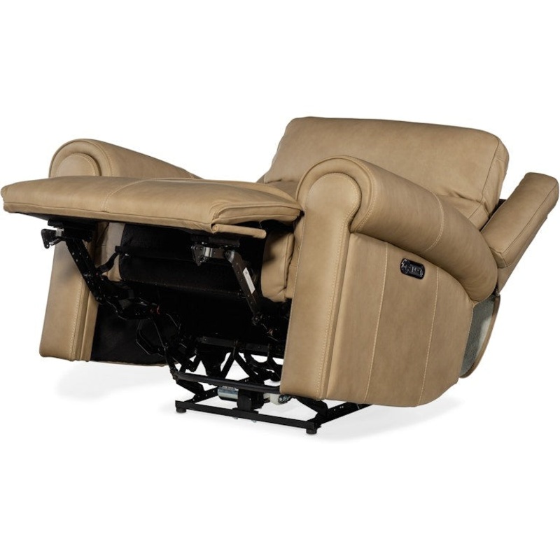 The Oberon defines sink-in-me comfort with its generous scale and soft rounded silhouette. Featuring a bustle back style and stitched trim detail, this Zero Gravity recliner has a power headrest and USB port and is covered in the Caruso Sand finished top grain leather. Hooker Furniture Upholstery is a designer-inspired collection of upscale leather seating that includes versatile reclining chairs, modern-day reclining sofas, eclectic club and artisan accent chairs, as well as a selection of executive desk chairs for the home. Designed and curated to appeal to a variety of style tastes, each piece from Hooker Furniture Upholstery is meticulously crafted in a unique selection of textures and hues.
