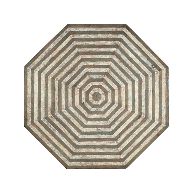Offering a modern silhouette in a classic pattern, the Commerce & Market Cocktail Table has an octagonal shape, plinth base and a striped design using contrasting neutral-colored finishes. Crafted of Mango Wood, the table has a light wood finish and is on casters for easy mobility. Targeting the next generation of furniture buyers, Hooker Furniture unveils the Commerce & Market brand of accent and occasional pieces. Interior designers were front-of-mind when the Hooker Furniture team developed the dynamic palette and flexible applications of pieces within the new brand. The assortment of modern and updated designs presented within the brand include a dynamic variety of materials, styles and color palettes to inject a younger sensibility into the companys portfolio. Commerce & Market consists of pieces for the living room including a variety of accent tables, credenzas, consoles, chests, cabinets, etageres and bar carts. Globally sourced with design inspiration from around the world, the curated designs feature an eclectic assortment of materials including cast metals, bone inlay, marble, stone, travertine, painted glass, acacia solids, pecan, oak, mango wood, and walnut veneers in a variety of rich finishes.