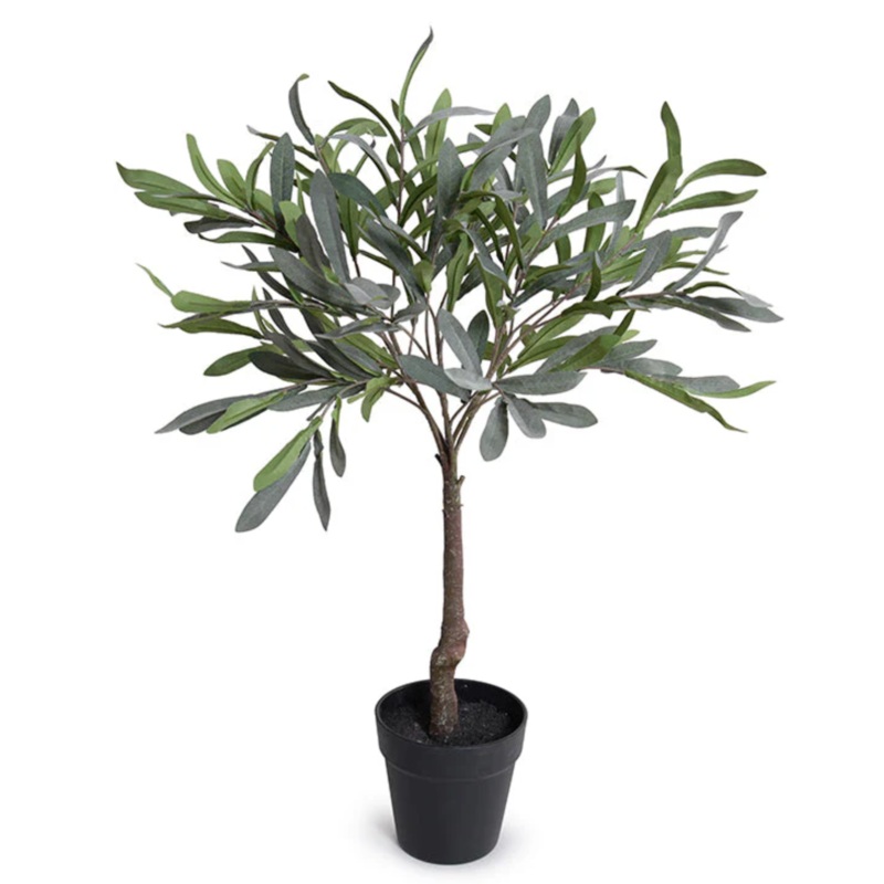 Bring a touch of sophistication and luxury to your space with our Olive Leaf Topiary. Crafted with slender green-gray leaves and a faux brown trunk, this tabletop beauty adds a touch of nature without the maintenance. Perfect for indoors, this topiary comes in two sizes and is ready to be shaped to your liking upon arrival.