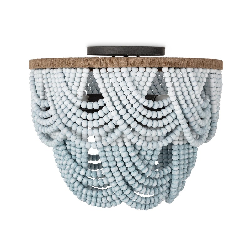 Now styled as a flush mount, the Ombre Wood Bead fixture is stunning, even on a smaller scale. The wooden beads drape gracefully in gradient layers, connecting to a jute-wrapped circular frame.