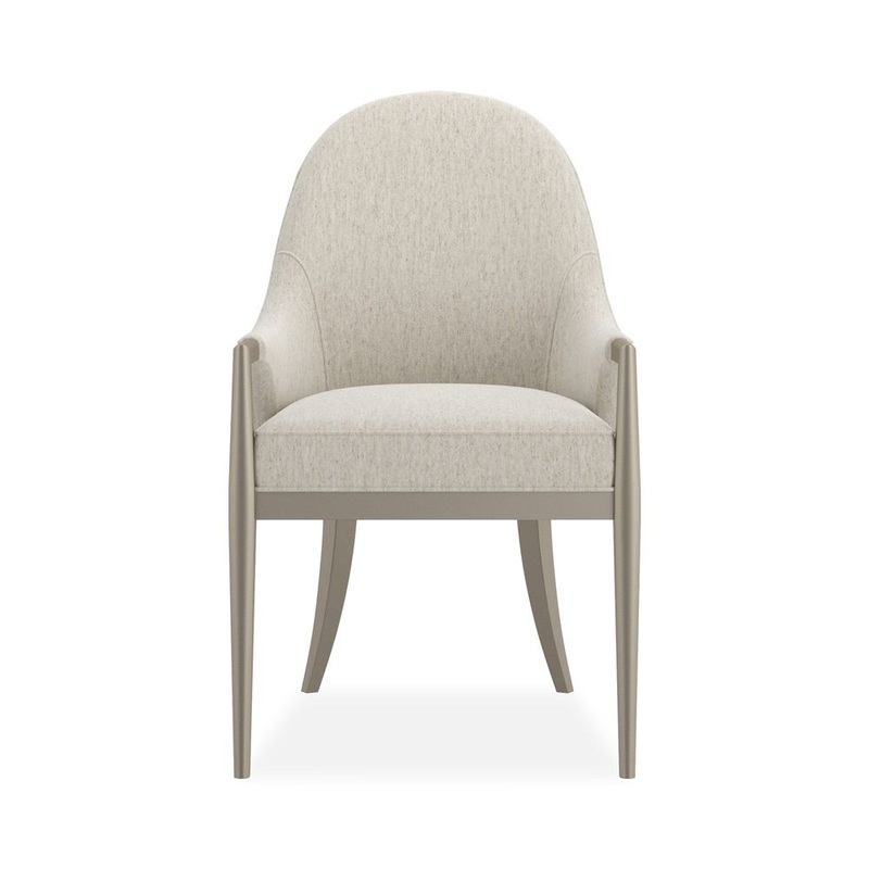 With a comforting curve along the back and arms, this modern arm chair introduces a style that’s unpretentious, yet elegant and refined. Accented by the welt, its simple silhouette is beautifully balanced on an exposed wood frame and tapered legs in Soft Silver Paint. Expertly tailored in an Ecru shimmer woven fabric that’s durable and easy to clean. Pair with a desk to elevate working from home.