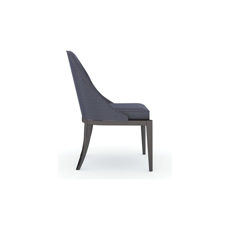 With a comforting curve along the back, this modern side chair introduces a style that’s unpretentious, yet elegant and refined. Accented by welt, its simple silhouette is beautifully balanced on an exposed wood frame and tapered legs in Dark Chocolate. Expertly tailored in a lightly textured navy performance fabric that’s durable and easy to clean. Style with a rectangular dining table to counter clean lines, or play up a table in the round. Pair with a desk to elevate working from home.