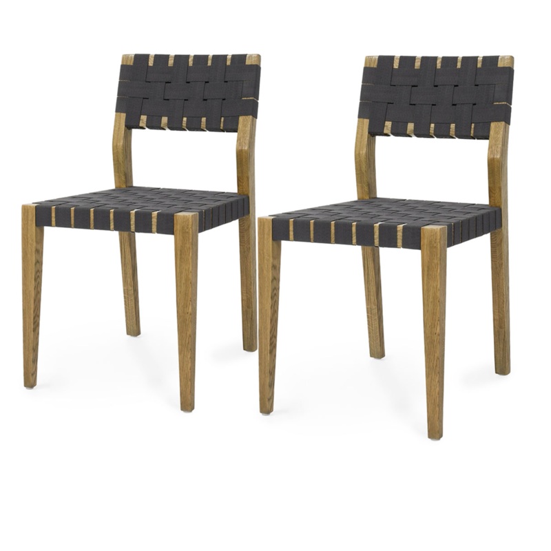 Elevate your dining experience with our Orlando Oak Wood Dining Chairs. The webbed tape design offers both casual comfort and eye-catching style. Crafted with solid oak tapered legs and sturdy construction, these chairs will stand the test of time. Perfect for a casual lifestyle, these chairs come in a set of 2. Keep them looking pristine with a clean, dry cloth and easily brush off any crumbs from the webbing. For tougher stains, seek professional help.