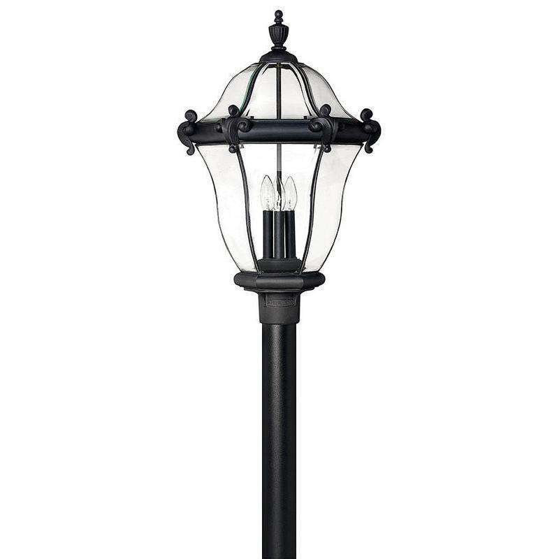 San Clemente’s elegant shape takes center stage with clear bent, beveled and bound glass as the central design element. Cast aluminum and brass construction complemented by exquisite cast ornamental detailing completes its captivating appeal.