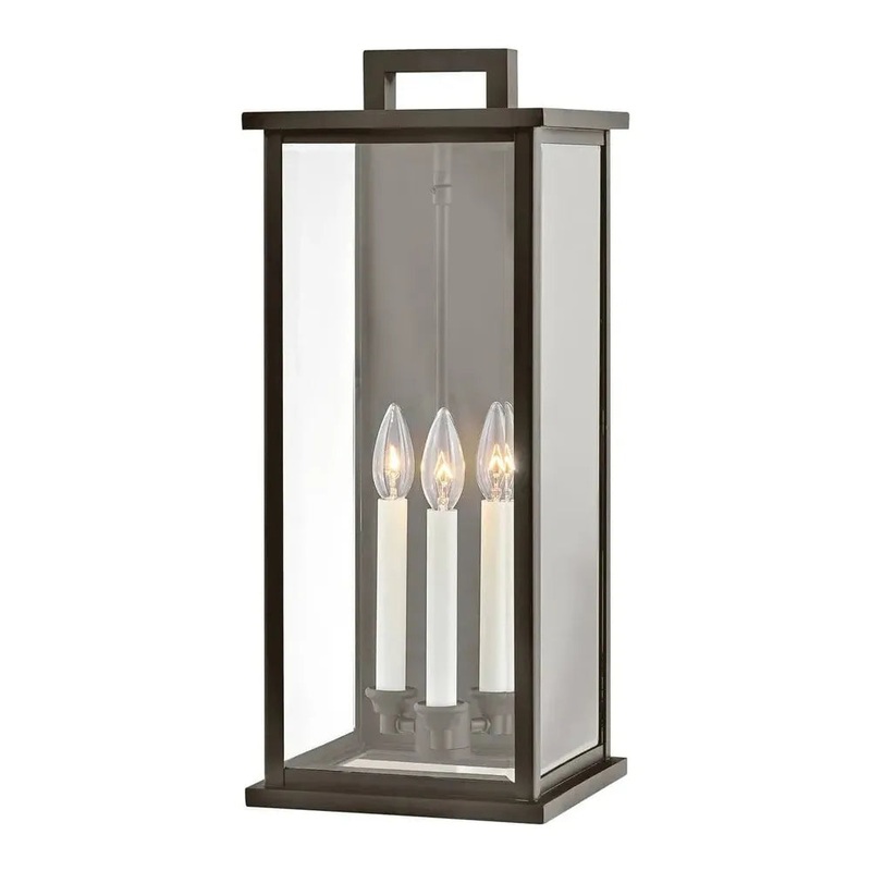 Modernize your outdoor space without sacrificing the traditional appeal you long for. Weymouth’s subtle yet overstated frame features a clean design, while its symmetrical lines evoke timeless elegance with a contemporary edge. The contrast candle sleeves in warm white balance the robust aluminum cast frame. The beveled glass is an elegant touch to help refract the light.