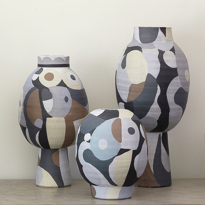 The Pablo Tall Vase is a hand-painted decorative vase to add a modern touch of interest to your home. Its matte cubist design was inspired by the Impressionist painter Pablo Picasso and features hand-done brush strokes and imperfect lines to create an artisanal look. The neutral color-blocked palette allows this modern piece to blend into almost any environment. For decorative use only. Does not hold water. Hand painted & hand crafted: no two pieces are alike. Pattern & color may vary per piece.