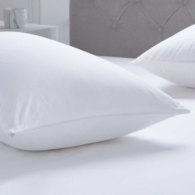 Our cotton pillow protectors are finished with a zip at one end, delivering a snug fit and ensuring they stay securely in place. Choose your perfect pair of standard or super king size protectors to enjoy this breathable design.