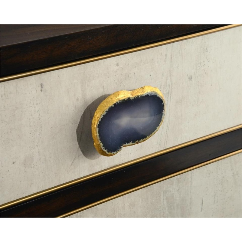 Description: This two-drawer nightstand is in walnut veneer and finished in Windsor black. Each drawer front is laminated in tiza gesso and finished with a single piece of polished agate with gilt edges.