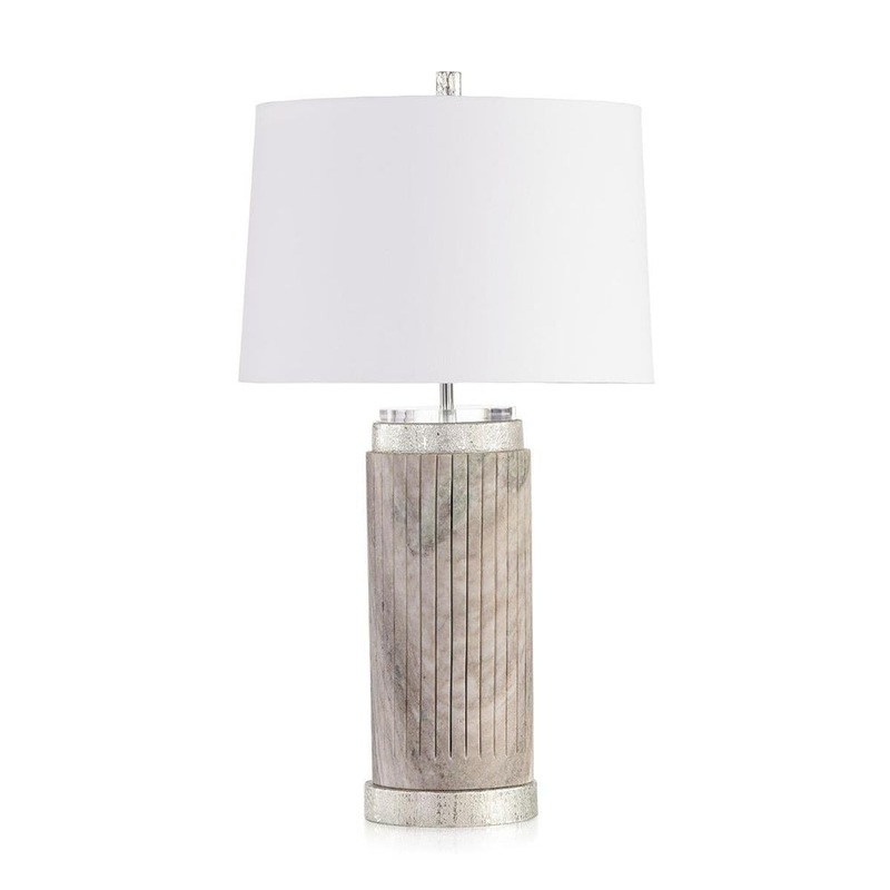 The Pan Netha Table Lamp offers timeless appeal, seamlessly blending classic elegance with modern inspiration. The body is crafted from marble, showcasing gorgeous natural tones and textural grooves. An aluminum base and neck accent in Nickel add a contemporary edge, further enhanced by stylish acrylic trim. Polished Nickel hardware and a textured cylinder finial provide beautifully complement the rest of the design. This piece is affixed with a three-way turnkey switch.