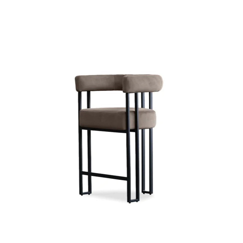 The PARAH counter stool, features bruna velvet upholstery and a matte black powder-coated steel frame. It’s design is the perfect blend of Art Deco inspiration with a modern touch. Also available in a dining chair for a matching dining set