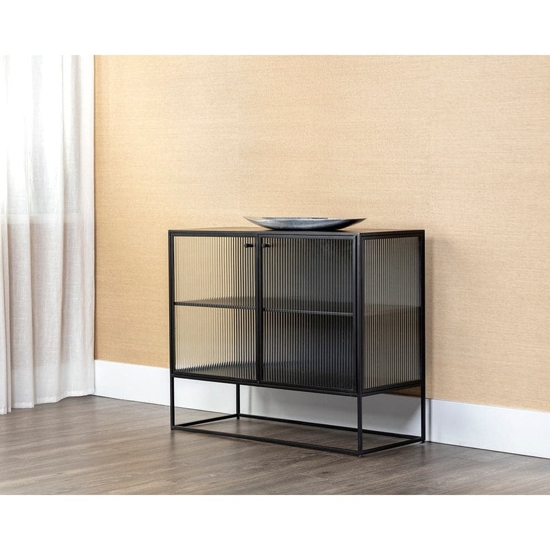 Inspired by mid-century modern designs, this large sideboard evokes a timeless and minimalist style. Crafted with a matte black iron frame and features fluted glass doors. Also available in a small size.