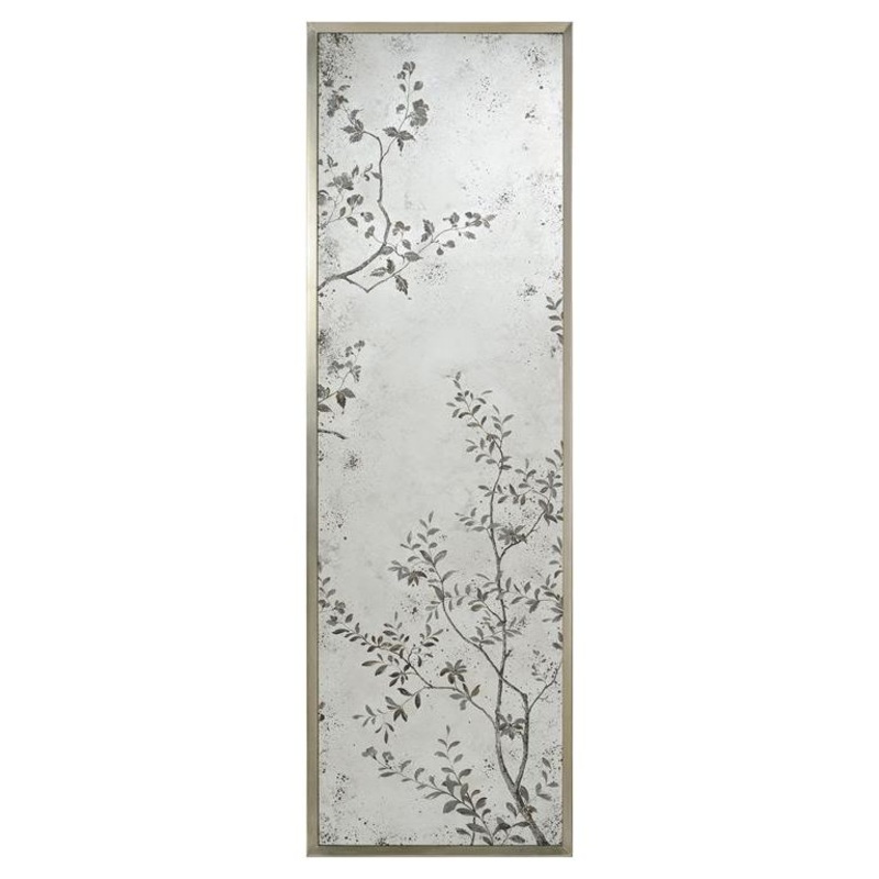 The Set of 3 Pastoral Mirror Panels depict a gorgeous scene with detailed flora displayed across reverse hand-painted mirrors. A stylish, chamfered frame in Pewter Silver provides beautifully complements to the artwork’s neutral tones. The panels come equipped with French cleats and are meant to be displayed from a vertical orientation.