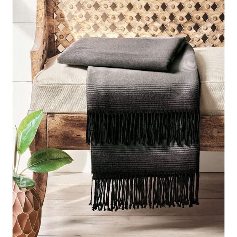 • In taupe and gray tones, the Patty Wool Throw is a stylish choice anytime a little extra warmth is needed