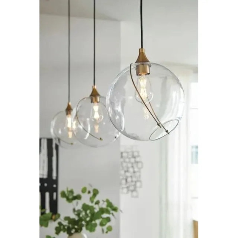 Mesmerizingly asymmetrical with a mid-century modern flair, Skye showcases a cluster of clear, open globes, each encircled with a slender brass ring. Each opening is off center and the globes fall to different lengths, with a Heritage Brass details pulling the look together perfectly. Adjustments are easily made with the cinching ring, also finished in Heritage Brass. Skye is part of the Lisa McDennon Collection.