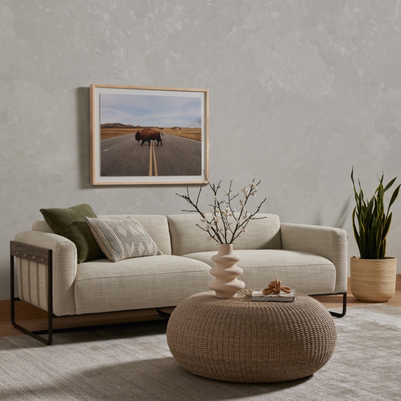 All-weather wicker weaves to cover an aluminum frame, with a soft, rounded shape and vintage white finish. Cover or store indoors during inclement weather and when not in use.