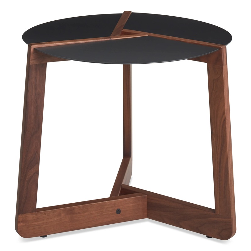 Slices of powder-coated steel team with solid walnut to achieve eye-catching results. Available in three sizes.
