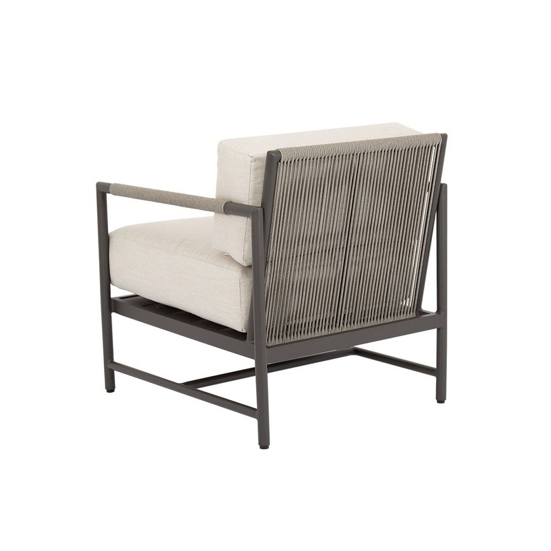 Description: Informed by mid-century design, Pietra Club Chair incorporates the best of classic proportions with modern materials. Inspired by the subtle tones of natural stone, this piece is rendered in a matte Graphite aluminum with vary-colored Shale all-weather rope. It features a rounded tube frame and mid-rise back, that is perfectly scaled for smaller spaces and casts a compelling profile. Fully welded, scratch-resistant powder-coated aluminum frame in Graphite Finish Wrapped in weather-resistant colorfast rope in Stone grey Weather resistant, high-resiliency foam cushions Stocked in Premium Sunbrella fabric in Echo Ash Non-marking plastic glides Commercial Quality Construction Custom Cushions available in approx. 4 weeks. Pietra is a part of the Stone color story, and blends well Marbella, Mesa, and items from the Bazaar.