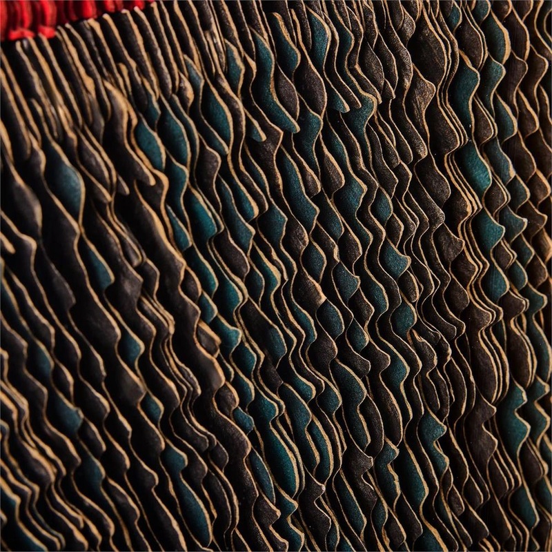 Planetary Harmony by artist He Hongbin is a textural design statement that infuses a space with a sense of mystique. Crafted from paper and acrylic, the piece features two overlapping, ringed circles in red and gray tones that evoke the look of planetary bodies floating in space. This hand-made work is held within a black aluminum gallery frame and may only be displayed from a vertical orientation.