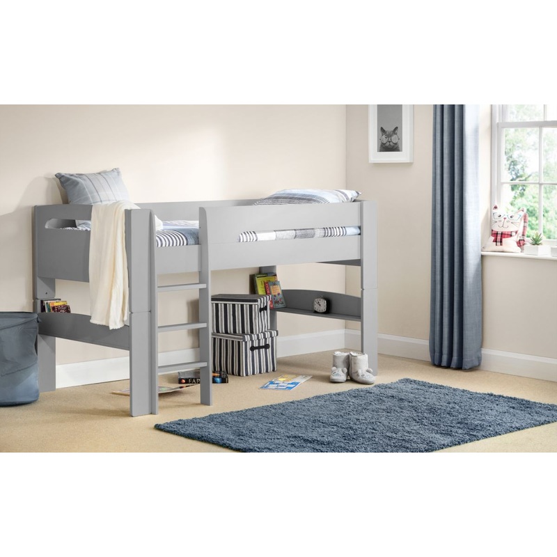 The Pluto Midsleeper is a sturdy and stylish mid-sleeper is available inthree colours.. Pluto’s contemporary design is accompanied by great functionality, with a robust ladder that can be assembled on either left or right and the capacity to convert to a single bed if required at any time in the future. It can be used on its own or paired with the extensive Julian Bowen Cameo Bedroom collection, while pairing it with the Pluto Star Tent (sold separately) in either pink or blue will turn the Pluto mid-sleeper into a fun and vibrant play space for kids to enjoy