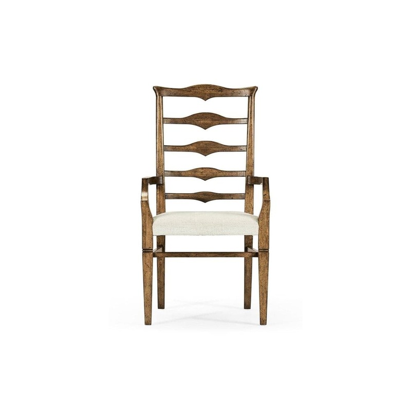 Casual medium driftwood ladder back arm chair, upholstered seat in Shambala.