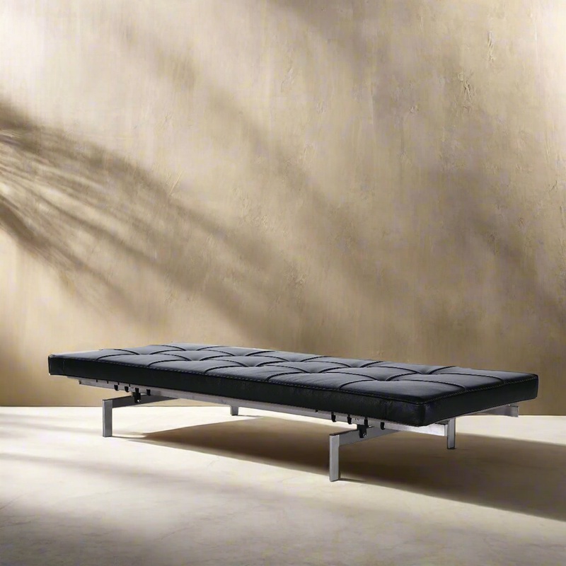 The Poul Daybed is inspired by the mid-century design of Danish designer Poul Kjaerholm. The Hand-stitched leather upholstery wraps around a comfortable high-density foam cushion. The Premium leather is an Italian aniline dyed leather that is finished with a button-tufted grid. The sturdy and durable stainless steel frame has a brilliantly brushed finish.