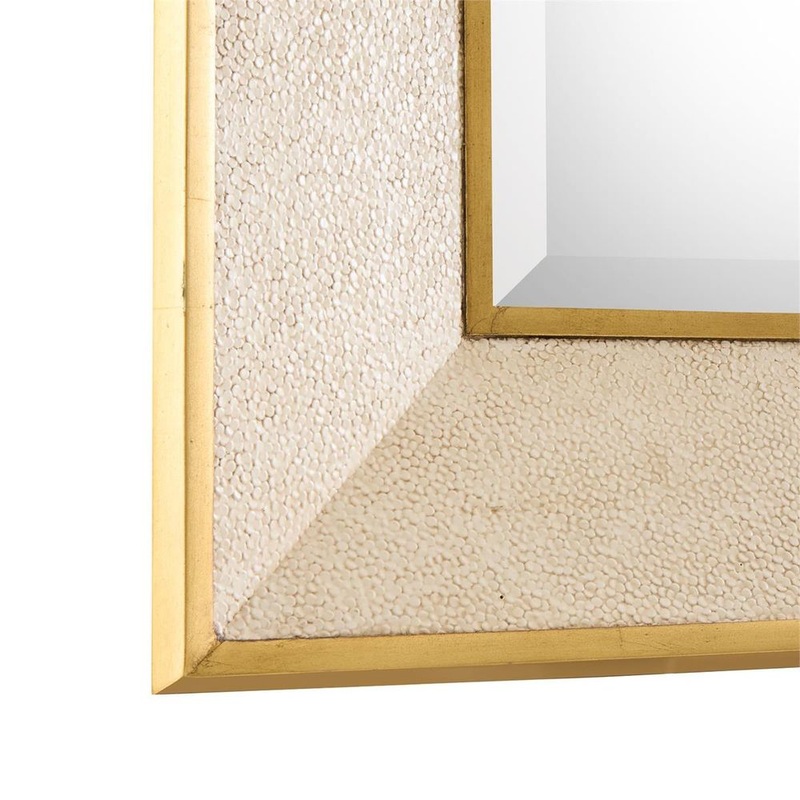 ThePrestige Mirror is a refined piece that elevates a simple profile with elegant tones. The beveled mirror is encased in a square beech wood frame, finished in a crisp Portici White and accented with a Gold Coast trim. Its versatile color palette allows it to seamlessly complement a range of interior styles. The mirror is equipped with French cleat hangers.