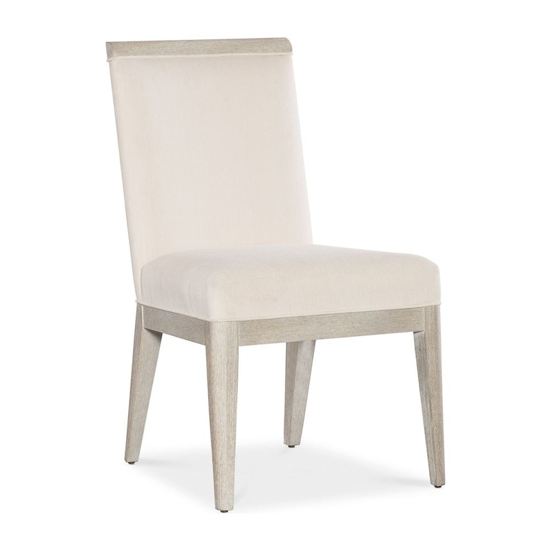 Description: Cozy chic is married to a clean modern profile with the Pulse Side Chair, featuring a comfortable upholstered seat and back. The wood trim along the top of the chair and the wood base and legs are crafted of Flat-Cut Quartered Oak Veneers with wire-brush detailing in a light finish with crystal-like alabaster and pewter hues, delivering a soft sophistication. The versatile chair is upholstered in the Cottony Cotton cover.