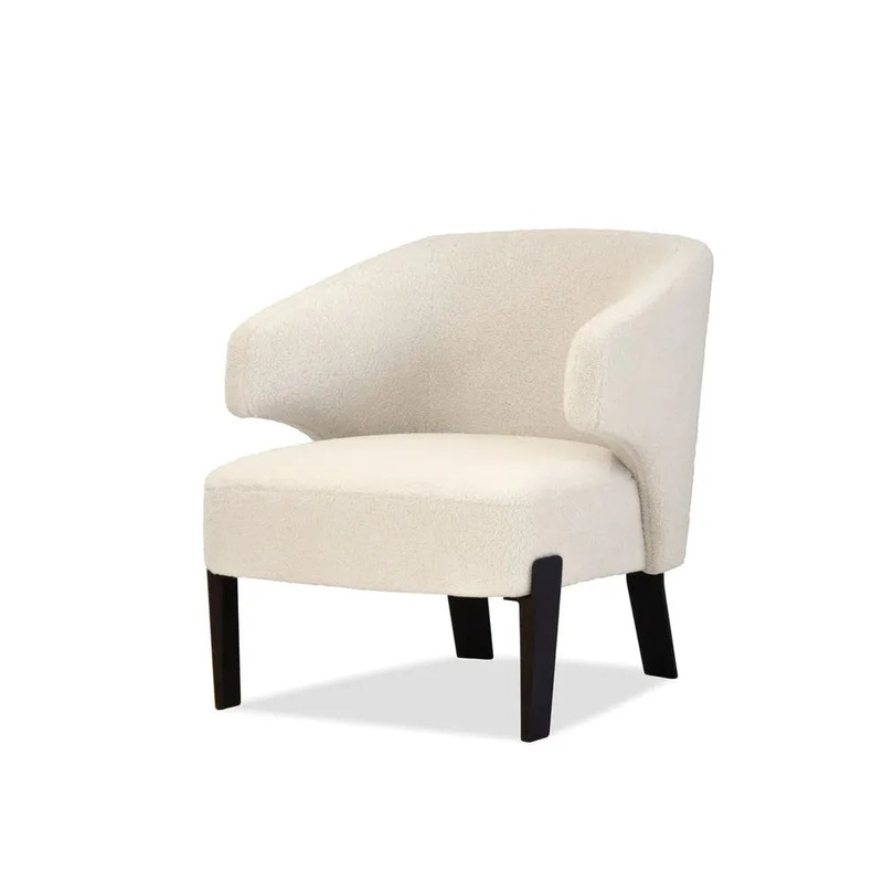 The Rancho is the perfect Occasional chair not only because of its unique curvy shapes but because it is small in scale and easy to fit a pair into any room grouping. The pitch of the back makes it very comfortable while the playful creamy boucle fabric provides texture and is as cuddly as a teddy bear. The legs are solid steel and carry up the sides and back for added design detail.
