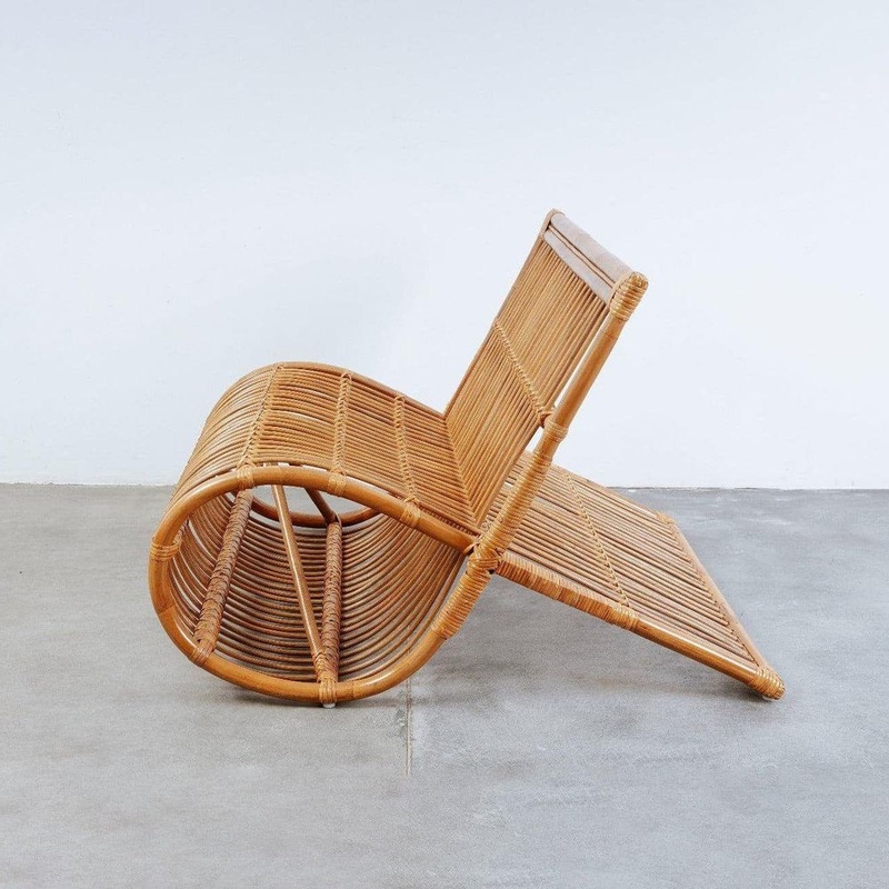 Expertly crafted from rattan this unique mid century inspired lounge chair features a swooping design, created from the seat that doubles as the front support for the chair. The open design keeps this piece looking light and airy so it won’t weigh down your space.