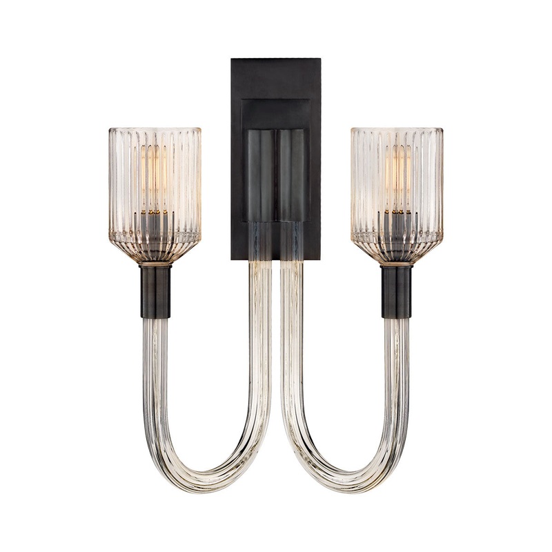 TheReverie Double Sconce has clear ribbed glass that gives this light a traditional, vintage charm. This light comes in different metal finishes that each add a glamorous touch to brighten any room.