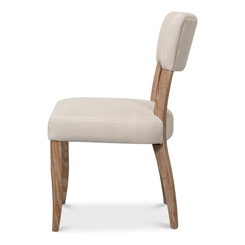 Come and sit a spell. Rhett is perfectly scaled and constructed to invite your guests to linger in comfort around any dining event. His solid oak frame, curved back and linen cover make Rhett a welcome addition to any dining event.