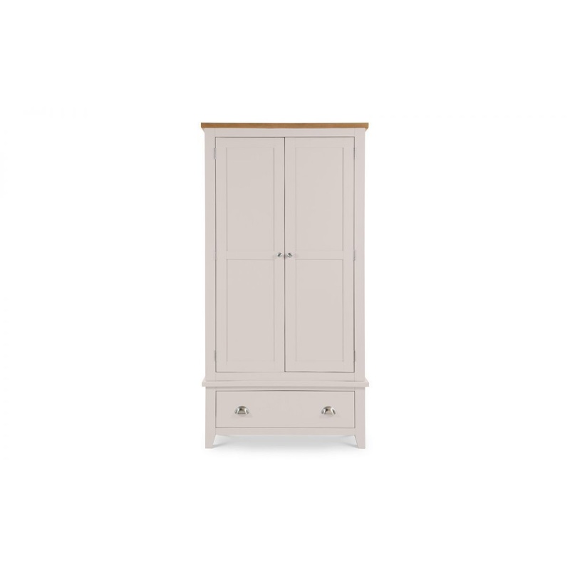 Finished in a elephant grey lacquer, the Richmond bedroom range is a timeless, elegant design suitable for a wide range of dcor. Constructed from white oak and oak veneers, this lacquered bedroom range brings a modern twist on a traditional construction. With ample hanging space behind two doors, and two storage drawers, this 2 door combination wardrobe meets all your needs for spacious storage for your clothes.