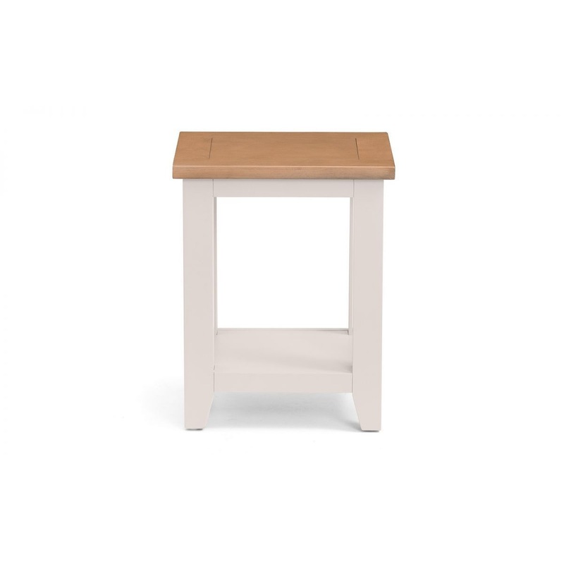 An elegant Lamp Table, presented in an immaculate painted, soft Elephant Grey finish with beautiful pale oak tops, crafted from a combination of high grade American White Oak solids and veneers.The combination of superior quality materials and classic design ensures a timeless appeal and fits perfectly alongside both traditional and contemporary decor.