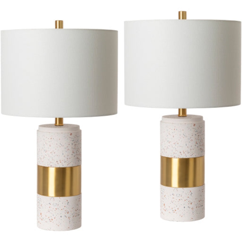Bring a modern look to your home with this Rimini Table Lamp. Crafted from polyester, linen, concrete, and metal for long lasting durability, the lamp features a white linen lamp shade to complete the contemporary design. Standing 25 inches tall, the Rimini Table Lamp is perfect for adding a touch of style to any room in your home.