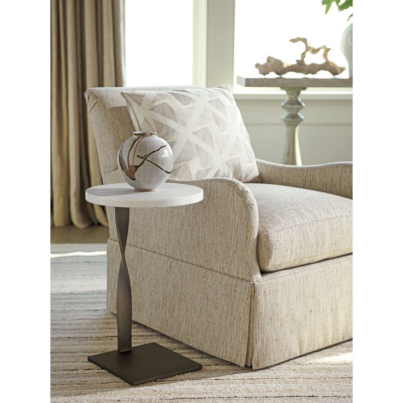 Marketing Copy: Ocean Breeze offers a fresh take on relaxed coastal living with transitional designs crafted from quartered mahogany in a beautiful shell white finish. Natural materials add textural interest and a feel of authenticity to the collection, including leather-wrapped rattan, woven raffia, braided lampakanai and Santa Cruz marble. Custom hardware and metal bases are finished in aged pewter, reinforcing the casual spirit of the designs. Unique upholstery silhouettes incorporate woven materials and intricately carved wooden frames for a sophisticated look that retains the casual essence of the coast. Soothing color palettes include seaglass, citrine, coral, marine blue and crisp white. The Tommy Bahama brand is iconic for its interpretation of casual elegance, and Ocean Breeze offers an inspired interpretation of refined coastal living.
