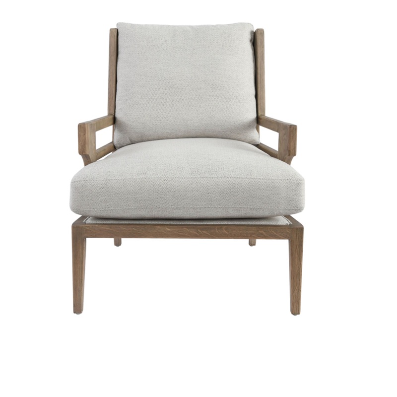 Introducing the Rodger Accent Chair, a luxurious addition to any room. Crafted from solid plantation oak wood, this accent chair exudes elegance and durability. The firm arm rests and soft, reversible cushions make for a comfortable and stylish seat. Available in pearl white.