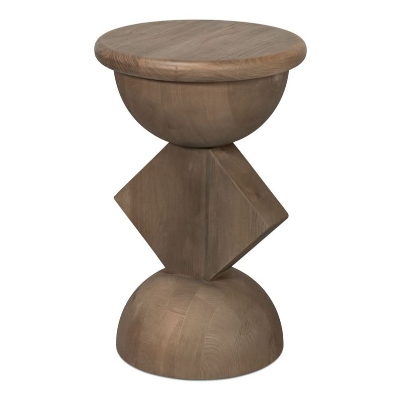 The Romeo tables. Set of 3 reclaimed elm in a light natural wash offers an organic texture. Ideal for displaying lamps, plants, or creating a layered side table look in rustic spaces.