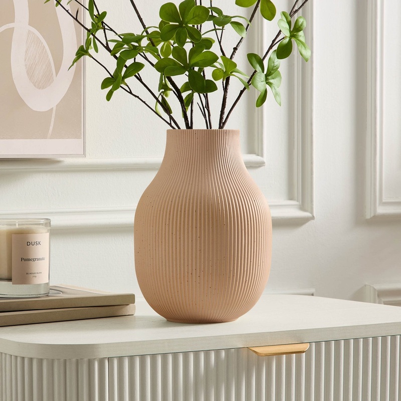 The Rose Matt Ribbed Vase brings a warm, organic feel to any space with its soft curves and elegant texture.