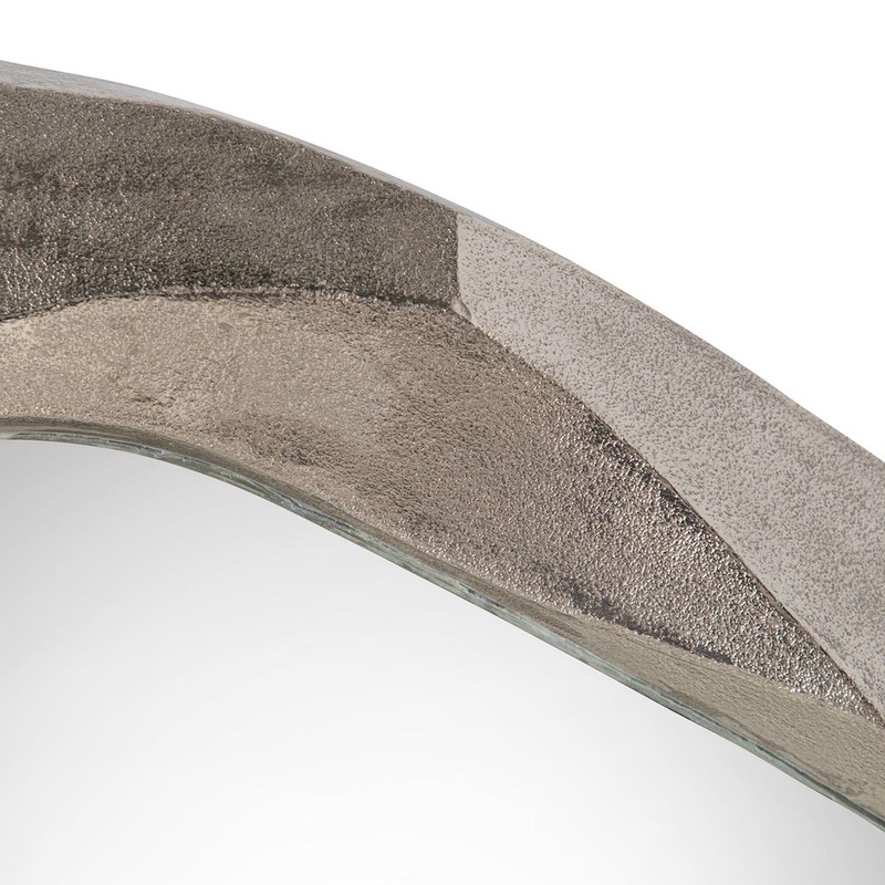 Crafted from enameled metal in a nickel finish, the Ruga Mirror is a textural marvel that commands attention within a space. Showcasing a gorgeous wrinkle effect throughout the entirety of the rounded frame, the piece breathes life into a space with alluring depth and dimension.